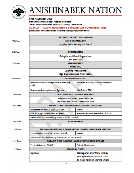Anishinabek Nation Fall Assembly Package